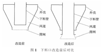 適當增加下料口內(nèi)筒長度,使水泥不堵塞下料口風(fēng)道,料與風(fēng)互不影響。